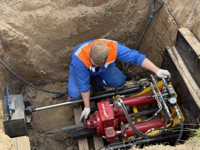 - Прокол с котлована, завершившийся затяжкой трубы диаметром 160 мм без предварительного расширения;